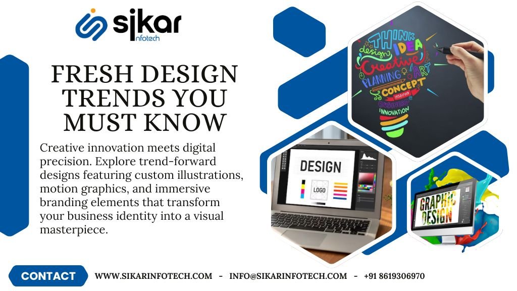 If you are searching for graphic designing services in Sikar, understanding the latest trends in graphic design can help your business stay ahead of competitors and connect better with modern audiences. At Sikar Infotech, we continuously adopt advanced design trends to deliver visually stunning and result-driven branding solutions that ensure complete client satisfaction.